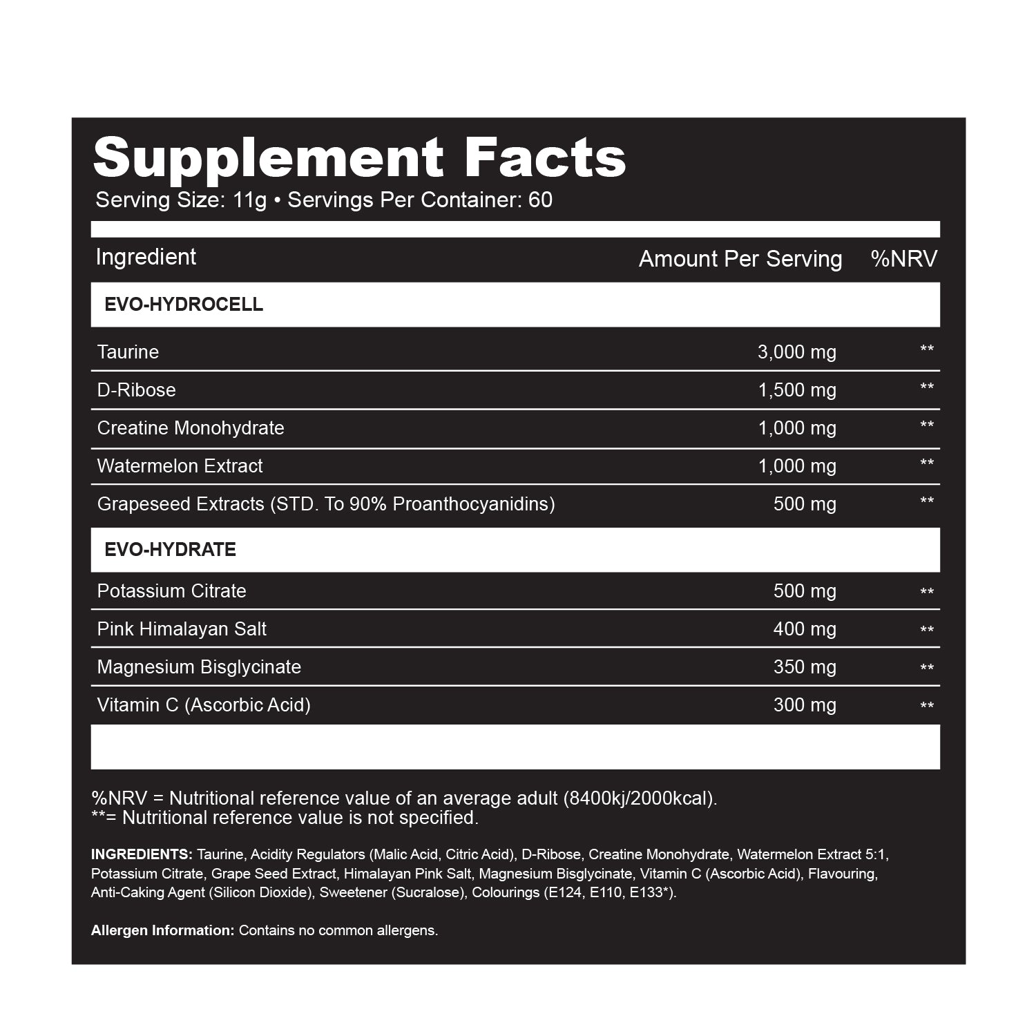 - 3,000mg Taurine – Key osmolyte that supports intracellular hydration
